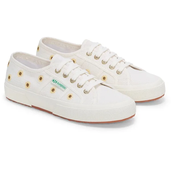 Superga Embroidery Linen Sunflower Linnen Dames Sneakers In Het Wit