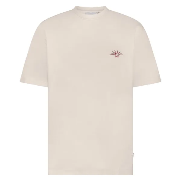 De ecru kleur met wijnrode accenten geeft dit heren T-Shirt een frisse, grafische uitstraling. Combineer met een indigo jeans, een beige chino of onder een open overshirt voor casual dagen. Draag met witte sneakers voor een cleane look. De opvallende rugprint met SUNDAY maakt het kledingstuk ideaal voor weekend en vrije tijd, terwijl de subtiele borstprint het ook solo