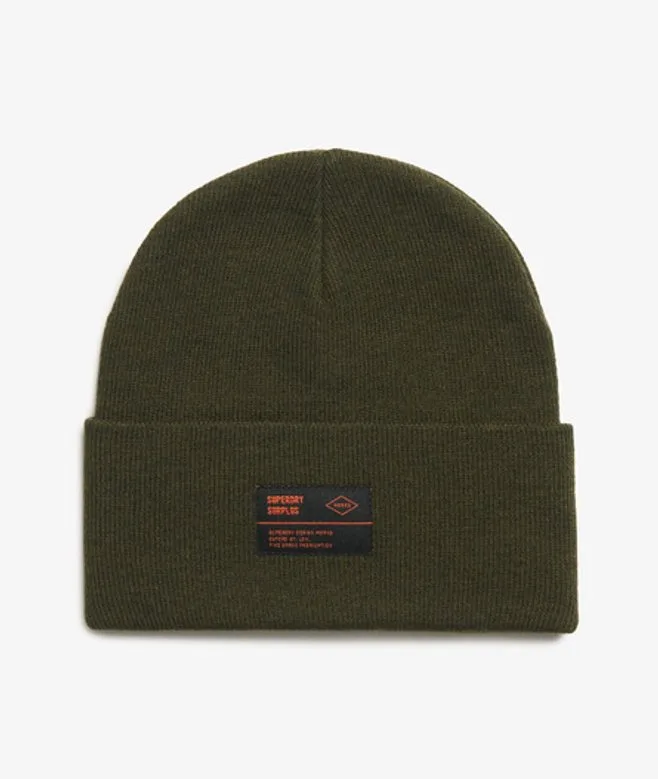 De invloeden van werkkleding in de modewereld zijn niet nieuw. De Surplus-beanie heeft een klassiek ontwerp dat al tientallen jaren door buitenwerkers wordt gedragen. Een volledig praktisch ontwerp waarmee je de pasvorm kunt aanpassen aan je stijl - en het weer. De eigentijdse materialen geven je look een stijlvolle twist en maken je outfit ook nog eens erg praktisch. Gebreide beanie Met omslag Superdry Surplus-logolabel