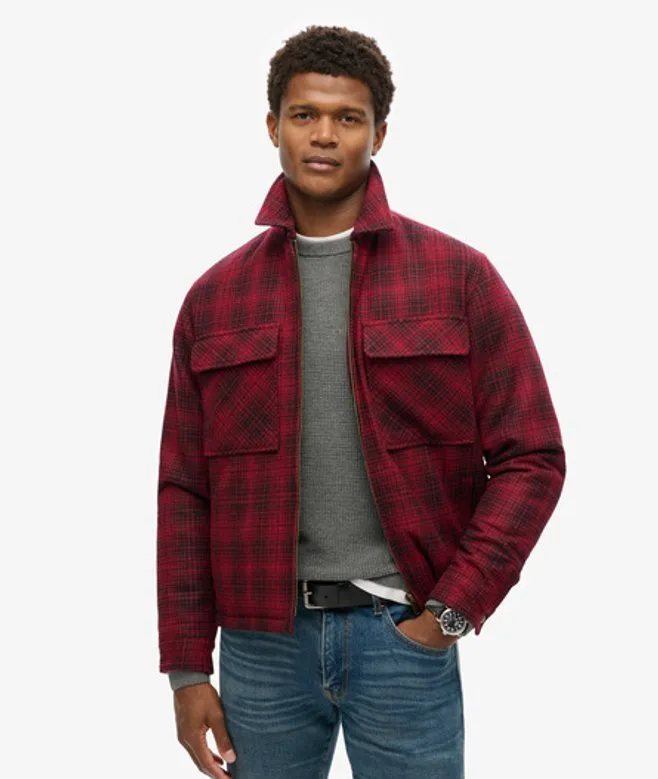 De perfecte partner voor al je avonturen dit seizoen. Het Surplus-geruit wollen overshirt met rits is met zijn behaaglijke stof en gewatteerde voering ideaal om aan te trekken als je warm wilt blijven, zonder je stijl op het spel te zetten. Relaxte pasvorm - de klassieke Superdry-pasvorm. Niet te nauwsluitend, niet te ruim, precies goed. Kies je gebruikelijke maat Volledige rits Lange mouwen met drukknopen op de manchetten Enkele kraag Vier buitenzakken, twee met drukknoopsluiting Eén binnenzak
