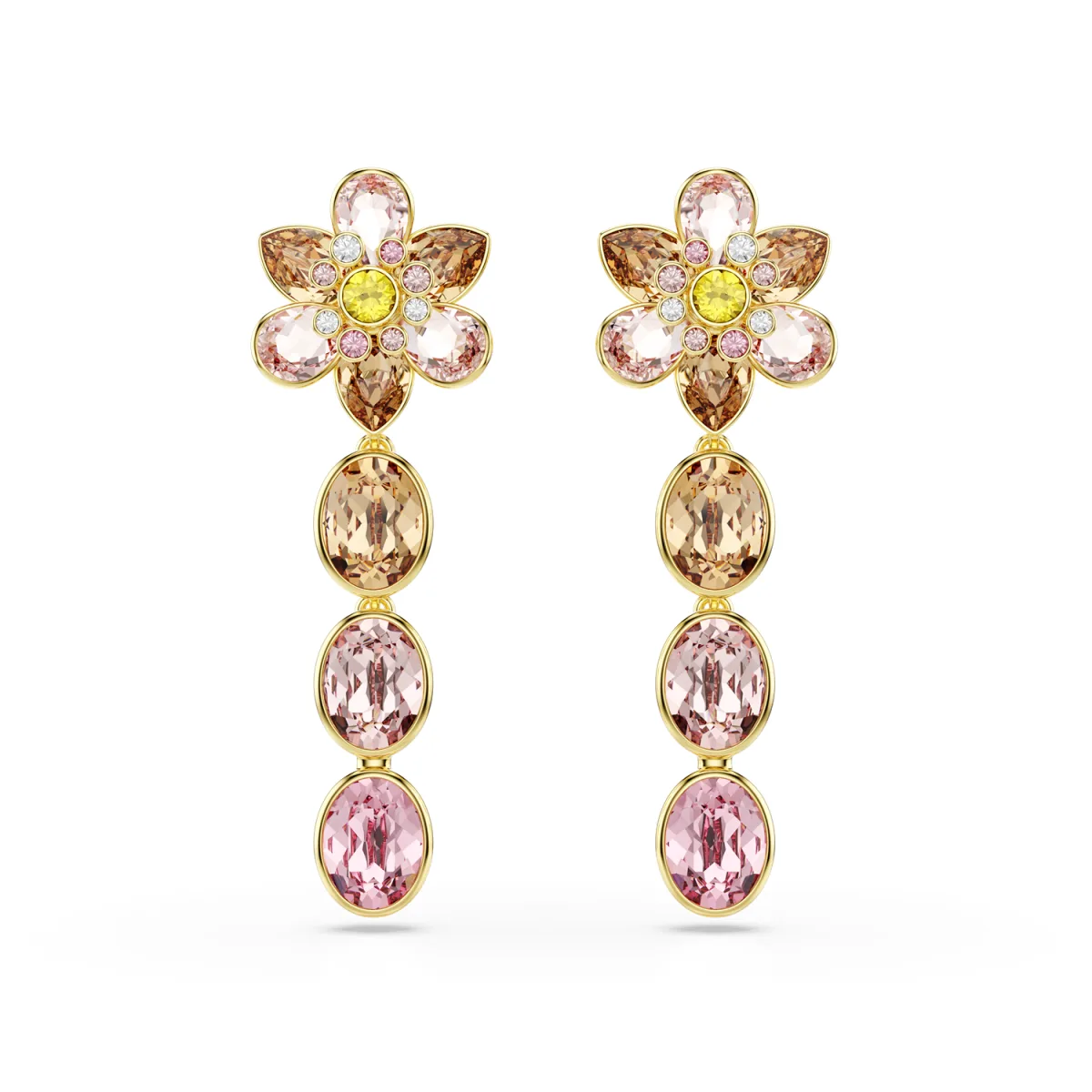 Swarovski Oorbellen 'Idyllia' geel / goud / ros / transparant