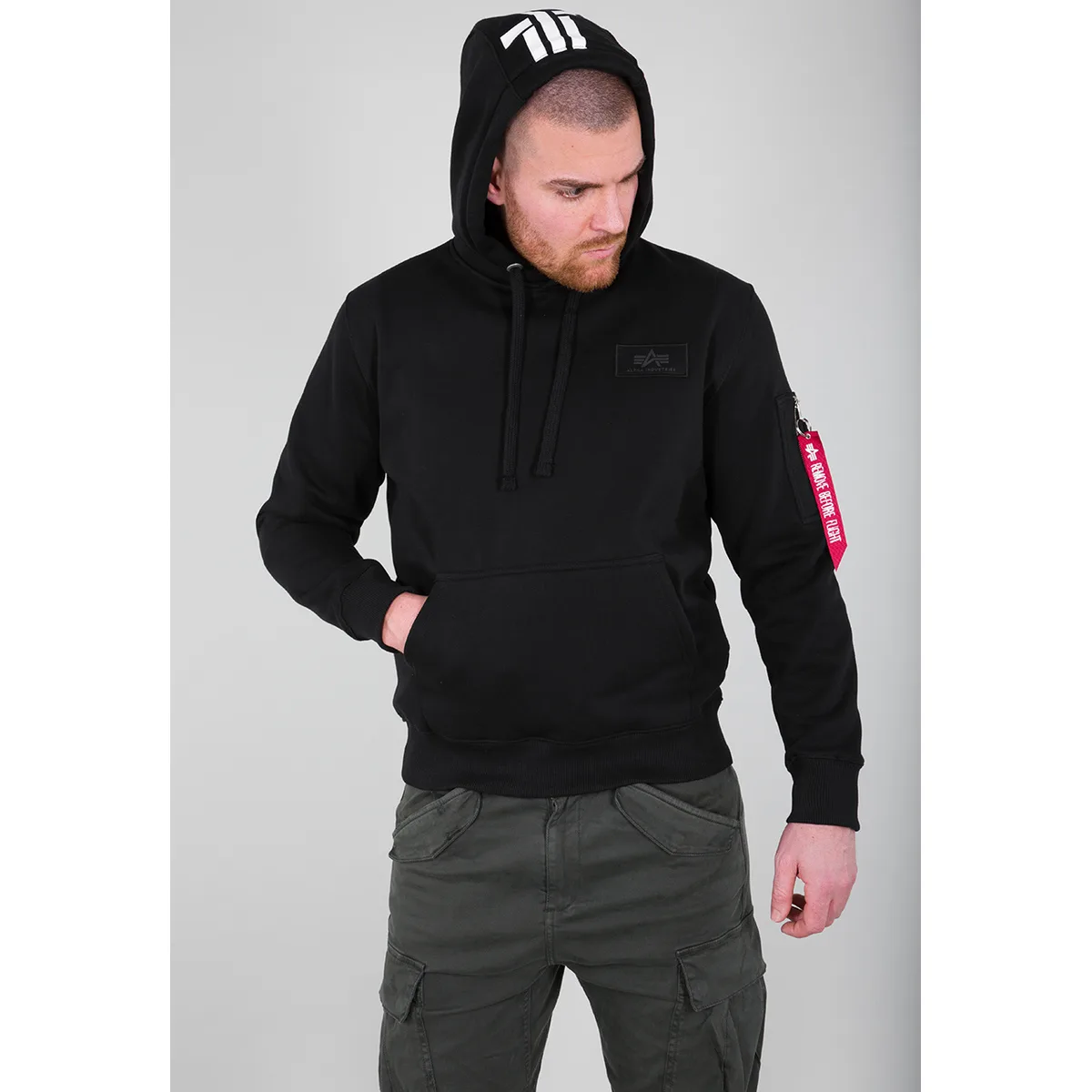 Hoodie voor heren van Alpha Industries;Katoenmix;Regular fit;Logopatch;Buidelzak;Mouwzak met ritssluiting;Elastische boordjes;Capuchon met tunnelkoord;Ruglengte bij maat M: 68 cm;Mouwlengte bij maat M: 67 cm