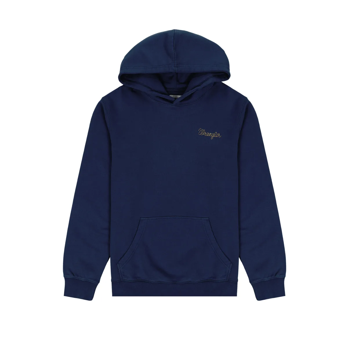 Deze casual hoodie wordt vast en zeker een van je favorieten.Met een Wrangler patch op de borst past deze comfortabele en veelzijdige hoodie elke dag perfect bij een casual jeans.Capuchon met trekkoord.Zak aan de voorkant.Geribde manchetten en tailleband.