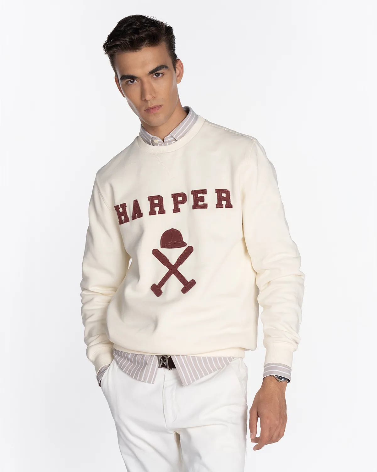 Premium katoenen sweatshirt met ronde hals en normale pasvorm. Zacht aanvoelend, comfortabel en makkelijk te stylen, met het kenmerkende geborduurde logo van het merk. Ideaal voor een relaxte stijl zonder in te boeten aan de casual elegantie die Harper & Neyer kenmerkt.