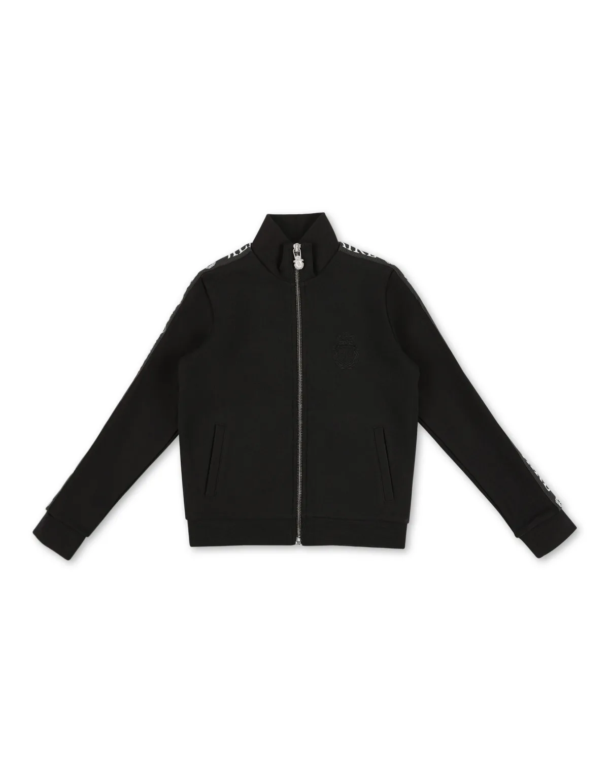 Billionaire cannot do without its crest: one of its most emblematic symbols. On this cotton fleece sweatjacket, which sleeves feature tapes with logo, it is embroidered at left chest. Zipper fastening. Two slit pockets. Ribbed neckline, cuffs and bottom hem.