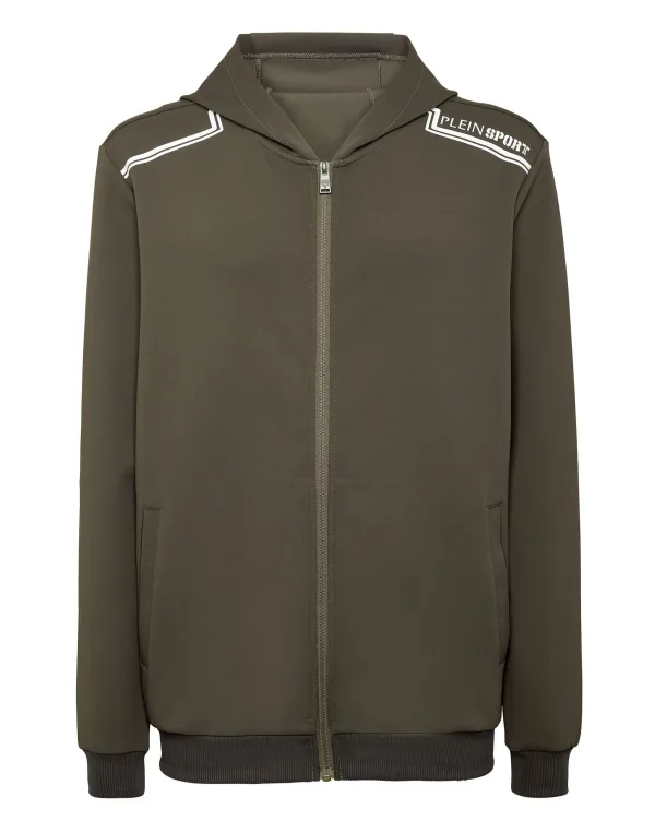 This hooded sweatjacket is the perfect choice for your post-workout or outdoor times. Style and performance in one item. Fleece technical fabric Framis details Lettering print at left shoulder Waterproof zip fastener Two slit pockets Rib knit hems