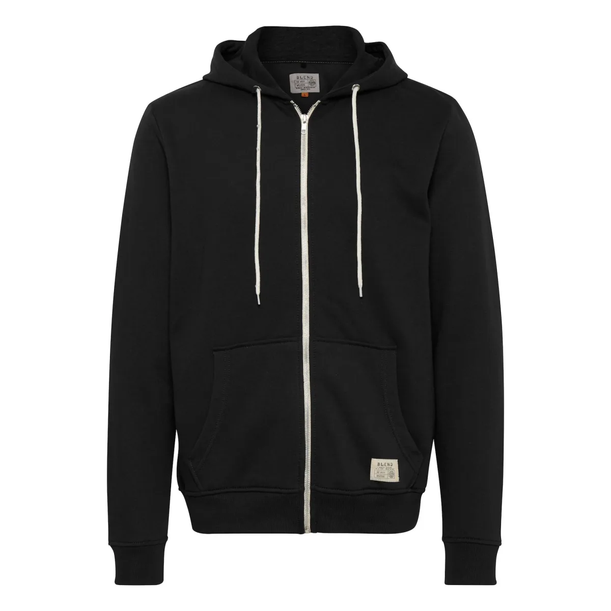 Heren sweater met capuchon van Blend! Trendy sweatshirtjack met capuchon voor heren met effen gevlekte manchetten en tailleband en 2 voorzakken.Merk: MELANIEItem: 701628Kleur: 70155 / ZwartKwaliteit: 60% katoen 40% polyesterSnit: slanke pasvorm