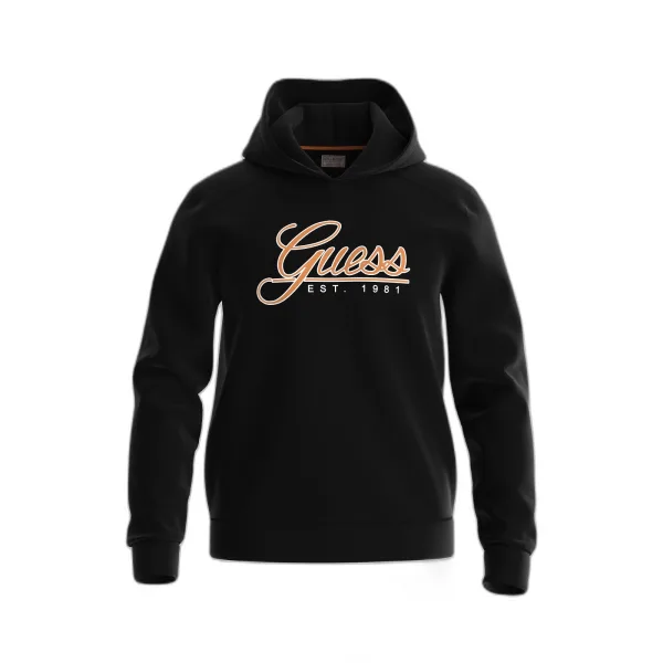 Guess Beau herensweatshirt van zwart katoen. Authentiek Guess-merkkledingstuk - streetwear/sportswear design van Guess - Guess voor heren, ideaal voor dagelijks gebruik - dit zwarte Guess-sweatshirt past perfect bij de rest van je garderobe - comfortabel katoen - klassiek - stijlvol -