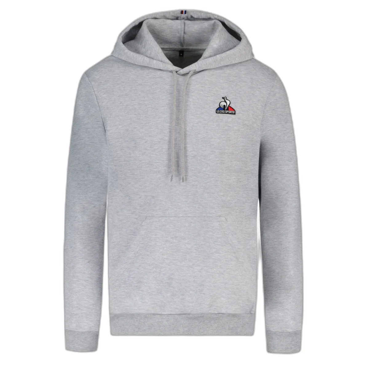 Sweat met kap Dubbelzijdig 300gr katoen/polyester Goede pasvorm, aangenaam en zacht om te dragen Normale/klassieke snit Kap met trekkoord, kangoeroezak aan de voorkant, blauw/wit/rood label met "Le Coq Sportif" op de kap. 1x1 ribboord aan de onderkant van de mouwen en de onderkant van het lichaam Geborduurde badge "Logo du Coq" aangebracht op de linkerborst wanneer deze wordt gedragen
