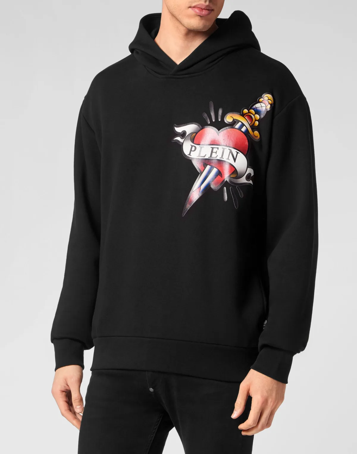Bepaal je stijl met een vleugje persoonlijkheid. Bekijk deze katoenen fleece hoodie met opvallende details. Zachte katoenen fleece Een tatoeagestijl opdruk met een doorboord hart op de linkerborst PP Hexagon op een badge van saffiaanleer die boven op de capuchon is genaaid Twee steekzakken Ribboorden en onderboord Pasvorm: Over