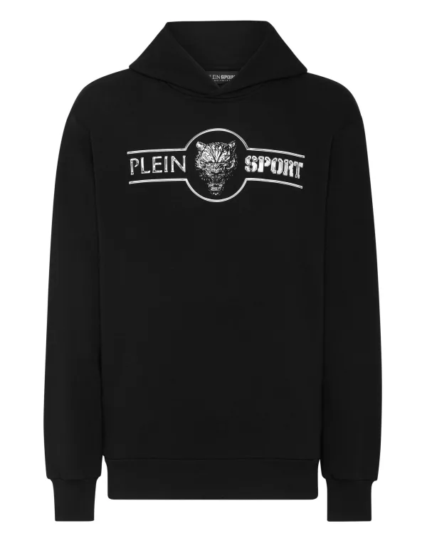Personaliseer je actieve tijd met deze fleece hoodie. Een paar grafische elementen volstaan om de stijl van Plein Sport te definiëren. Kijk wat we voor dit seizoen hebben gecreëerd. Katoenen fleece met gegauzed voering De iconische tijger in een folieprint Rubberen patch op de capuchon Twee steekzakken Ribgebreide zomen