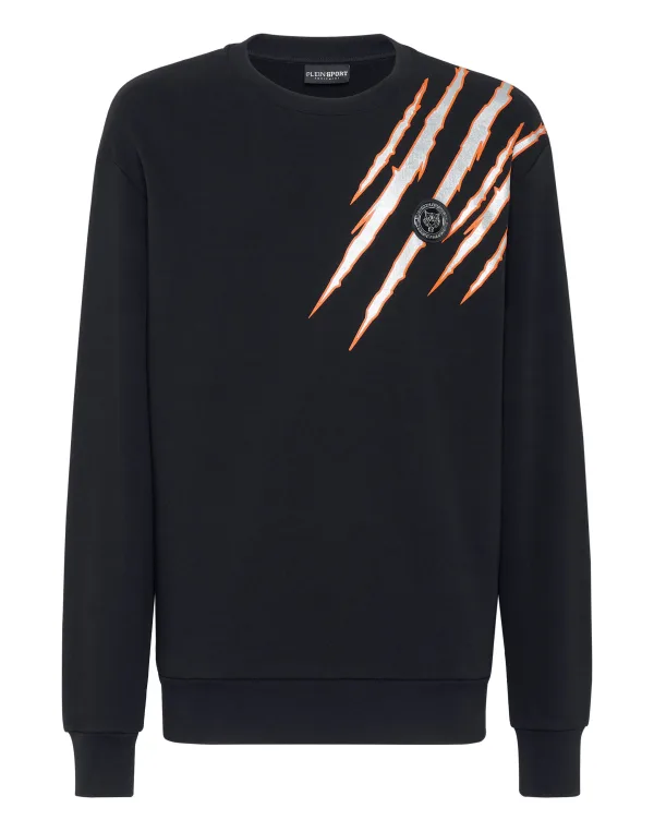 Dit opvallende sweatshirt geeft actieve kleding een gedurfde look, met een kenmerkend krasontwerp dat de dynamische geest van Plein Sport weerspiegelt. Grafische klauwmarkering zorgt voor onmiddellijke scherpte en beweging Klassiek crewneck silhouet met een gestructureerde afwerking Zachte binnenkant voor comfort tijdens training of casual wear Geribde manchetten en zoom verbeteren de atletische pasvorm Perfect met joggers, denim, of gelaagd onder bovenkleding