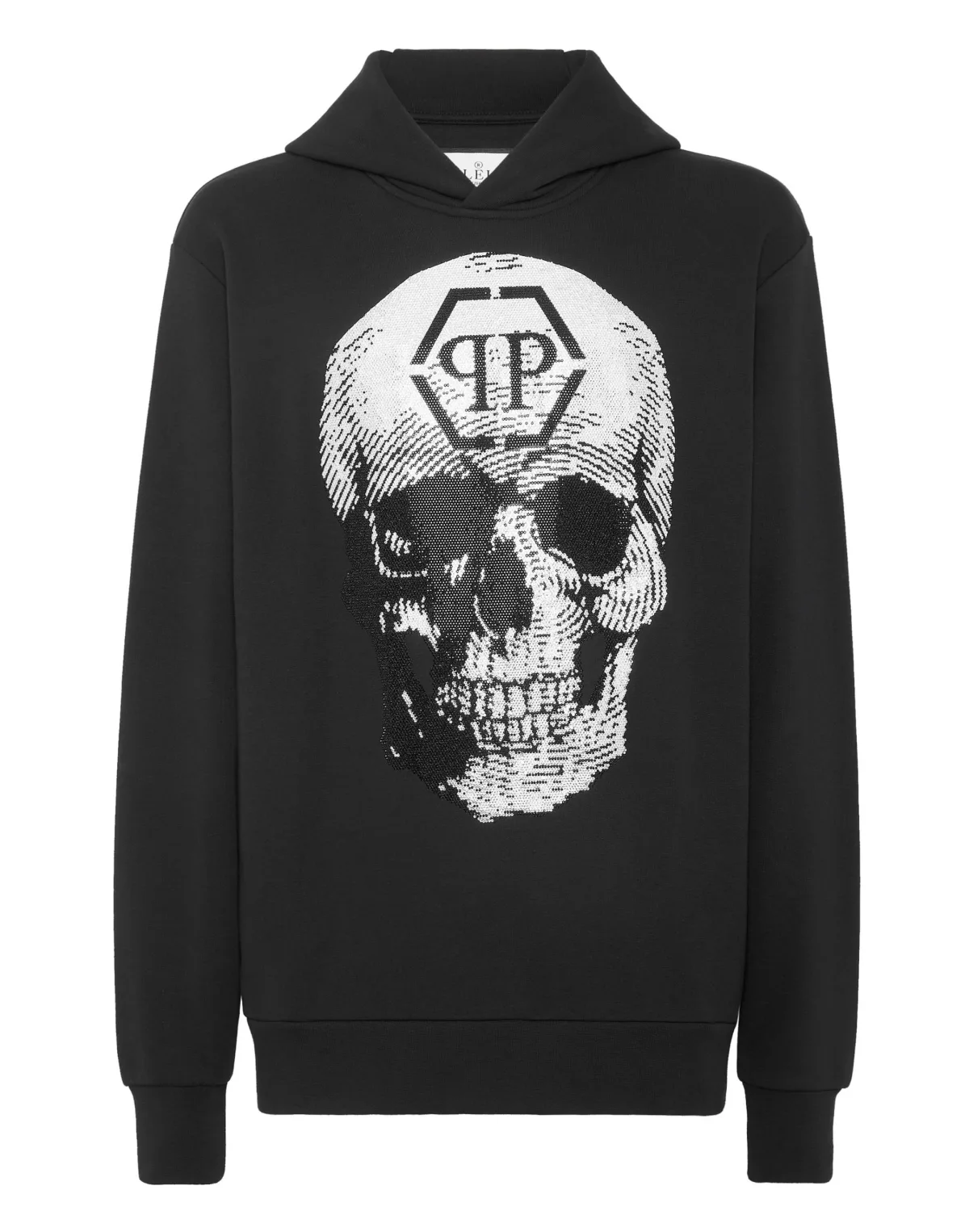 Verfraaid Kijk hoe origineel deze katoenen fleece hoodie met print is. Zachte katoenen fleece PP Hexagon op een saffiaanleren badge bovenop de capuchon Rhinestone-print van de iconische Skull met Logo Twee steekzakken Ribgebreide manchetten en onderboord Pasvorm: Over