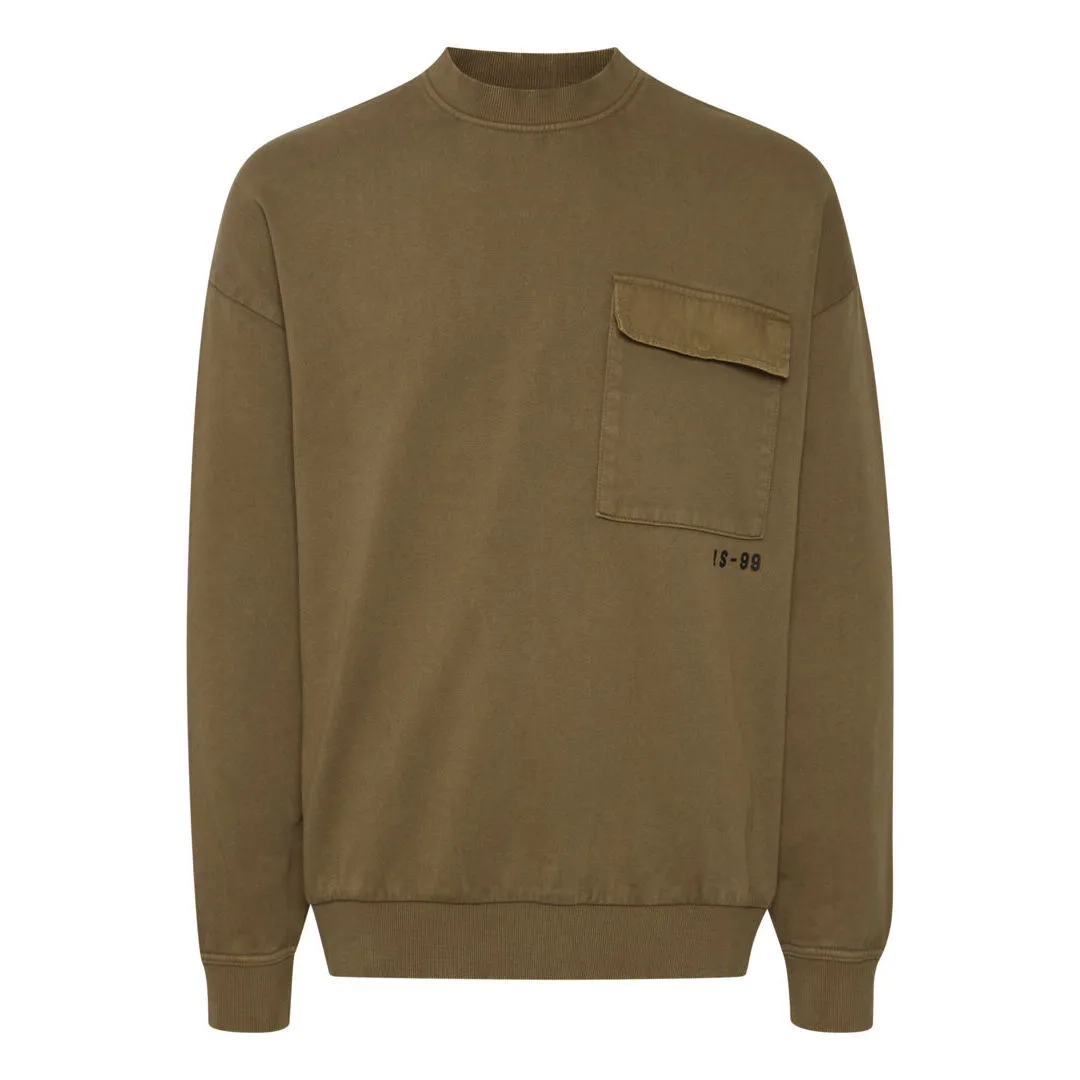 Sweat-Herenhemd van !SolidPuur katoenCasual snitGewassen lookRonde halsAfhangende schoudersBorstzakGeribde manchetten en zoomBedrukt logo