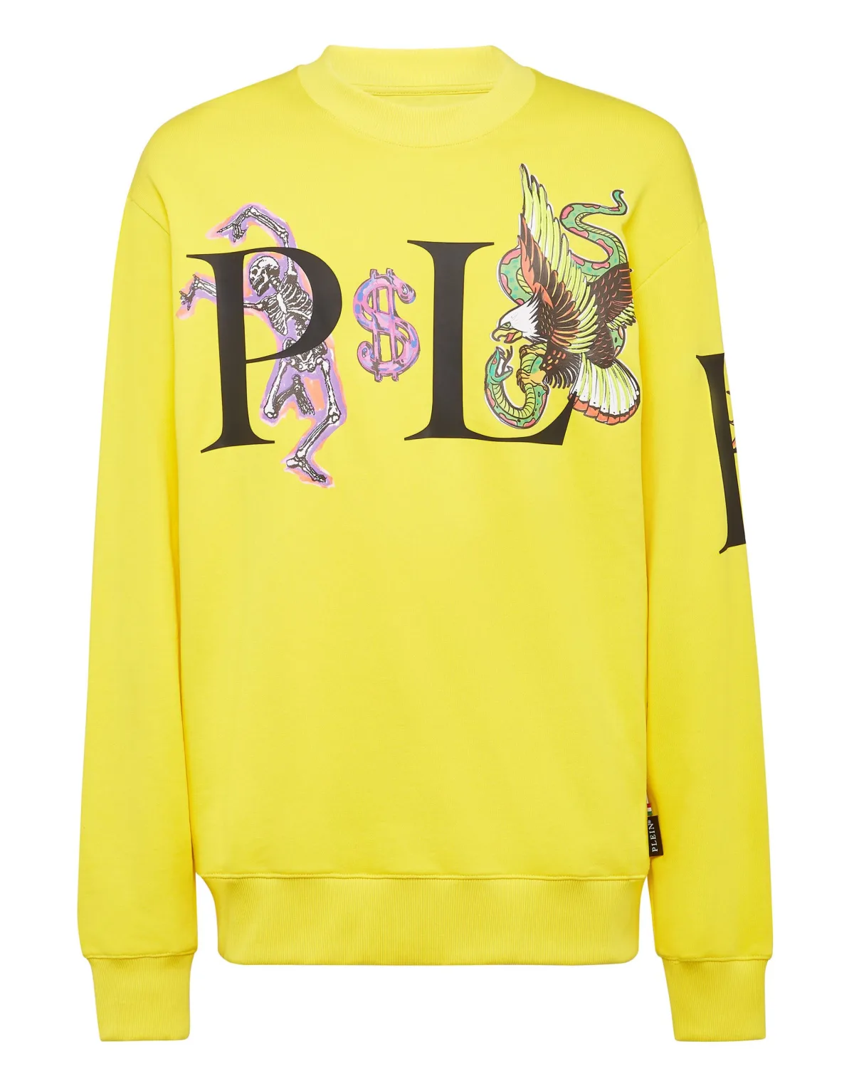 Geef je look een hype met deze originele katoenen fleece crewneck. De iconische letters van het merk zijn hier gedrukt in een Tattoo-stijl. Een saffiaanleren patch met de PP Hexagon is op het juk genaaid. Ribgebreide zomen.