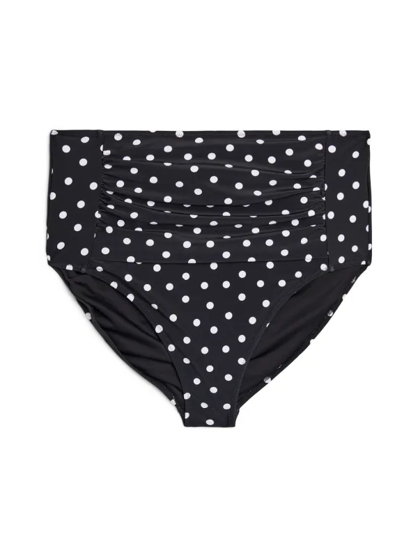 Design: Elastische inserts; Motief: Gestippeld; Broekvorm: High waist; Details: Gedrapeerd; Extra's: All-over patroon; Taillehoogte: Mid waist
