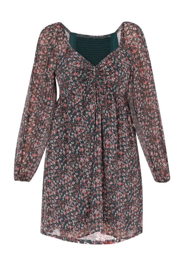 Design: Pofmouwen; Type sluiting: Slip; Materiaal: Viscose; Motief: Bloemenprint; Details: Plissé; Extra's: All-over patroon; Lengte: Kort/mini; Snit: Recht; Pasvorm: Normale pasvorm; Armlengte: Lange mouw