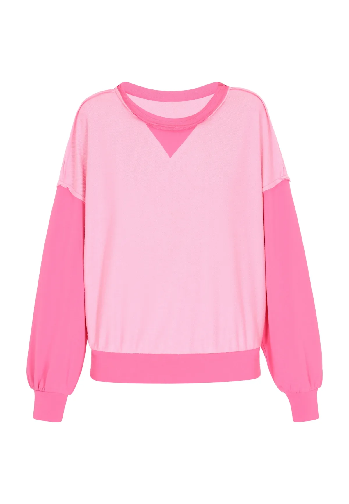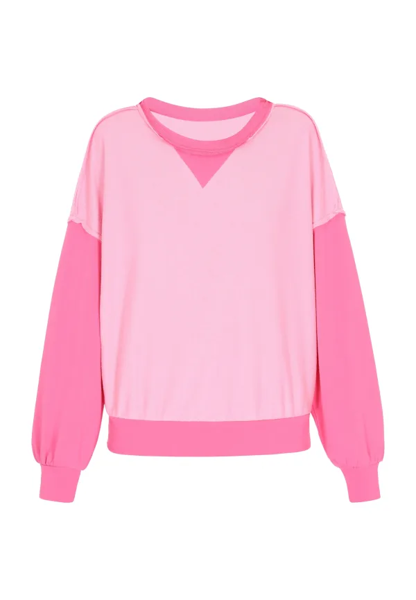 Design: Gevoerde zoom/rand, Geribd ceintuurtje, Overcut schouder, Nektape; Materiaal: Sweatstof; Halstype: Ronde hals; Motief: Color-Blocking; Details: Gedrapeerd; Extra's: Binnenstebuiten naden, Voelt zacht aan; Pasvorm: Losse pasvorm; Armlengte: Lange mouw; Lengte: Normale lengte