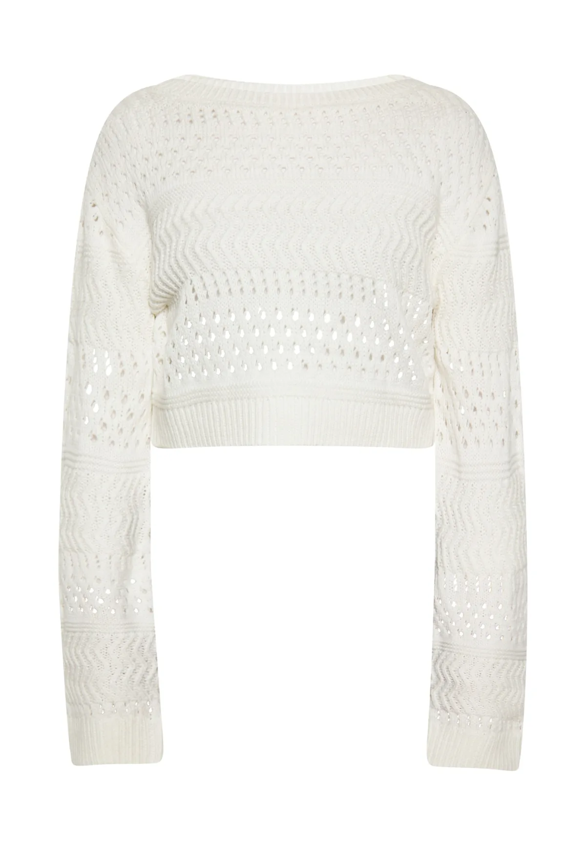 Design: Rechte zoom; Halstype: Ronde hals; Motief: Effen; Details: Mesh; Extra's: Met textuur; Pasvorm: Normale pasvorm; Armlengte: Lange mouw; Lengte: Korte pasvorm