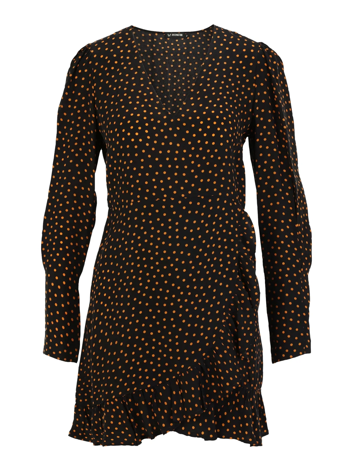 Design: Gevoerde zoom/rand, Pofmouwen, Wikkel-look; Halstype: V-hals; Motief: Gestippeld; Soort bandjes: Brede bandjes; Details: Volant, Gedrapeerd; Extra's: All-over patroon, Fijne stof, Voelt zacht aan; Lengte: Kort/mini; Pasvorm: Normale pasvorm; Armlengte: Lange mouw