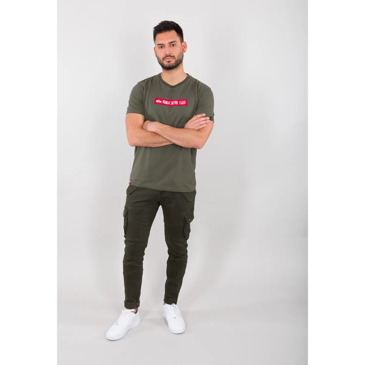 Alpha Industries T-Shirt | RBF Latex Print TArtikel nr.: 126515Om u steeds iets nieuws te kunnen bieden, hebben onze collega's van de ontwerpafdeling een volledig nieuwe drukmogelijkheid ontwikkeld: latexdruk. Het lijkt misschien vreemd op het eerste gezicht, maar het werkt goed en ziet er tegelijkertijd geweldig uit!Productdetails Top: Gekamd katoen jersey Vorm: Regular fit Latex print op voorzijde RBF nekbandMateriaal samenstelling Buitenstof: 100% katoen / attn. kleur 315 antraciet = 90% katoen 10% PES (Polar Fleece)