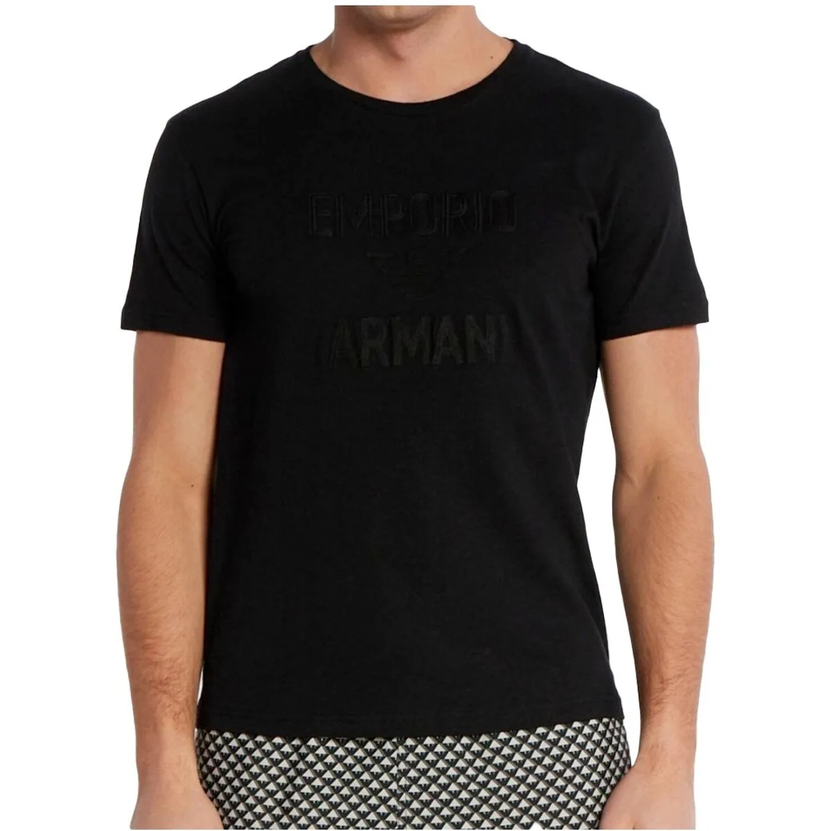 Emporio Armani Eagle heren T-shirt van zwart katoen. Authentiek Emporio Armani kledingstuk - streetwear/sportswear design van Emporio Armani - Emporio Armani herenmode, perfect voor dagelijks gebruik - dit zwarte Emporio Armani T-shirt past perfect bij de rest van je garderobe - comfortabel katoen - klassiek - Eagle -