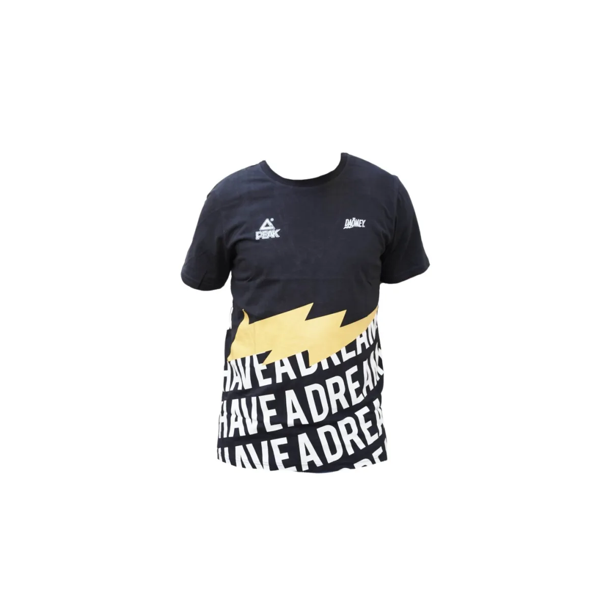 Het ontwerp van dit 100% katoenen T-shirt werd gecreëerd door Peak en Daömey als onderdeel van een samenwerking die een eerbetoon brengt aan Martin Luther King. De nekversteviging en het gewicht van 150 GSM geven het shirt duurzaamheid en comfort; een ideaal product voor de zomer en het tussenseizoen. Wat de esthetiek betreft, hebben wij gekozen voor een zwarte basiskleur, waardoor de tekst van de "I have a dream"-speech goed uitkomt, evenals de gouden bliksemschicht.