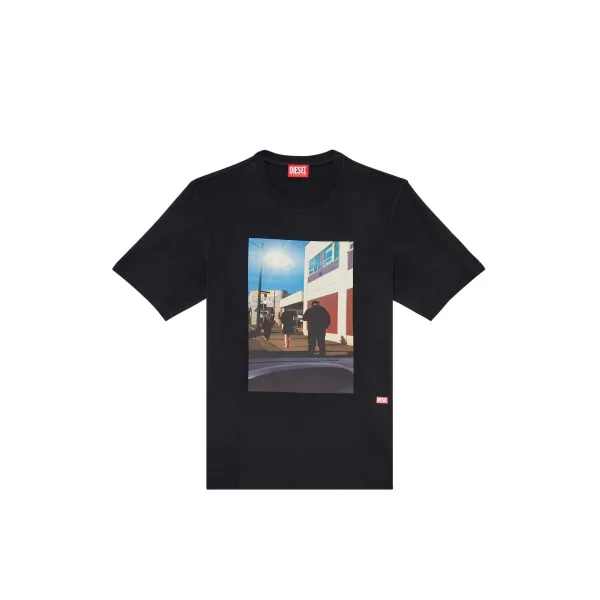 T-shirt met regular fit voor heren, gemaakt van ruwe katoenstof. De voorkant is versierd met de digitale fotoprint 'Oval D sighting'. Het is voorzien van een labeltransfer Diesel.• Samenstelling: 100 % katoen• Land van herkomst: VietnamMachinewasbaar op 30 °CNiet blekenNiet in de drogerStrijken op max. 110 °CNiet chemisch reinigenLaat in de schaduw aan een hanger drogen