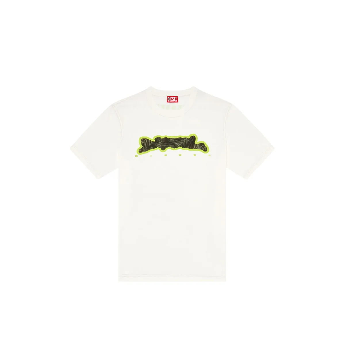 T-shirt voor mannen van biologische katoen. Dit regular fit t-shirt heeft een logo print Diesel en een camouflagepatroon met gestreepte zebra's, wat doet denken aan de reusachtige opblaassculpturen van de Parade. De contrasterende slogan « For Successful Living » siert de achterkant van de schouders.
