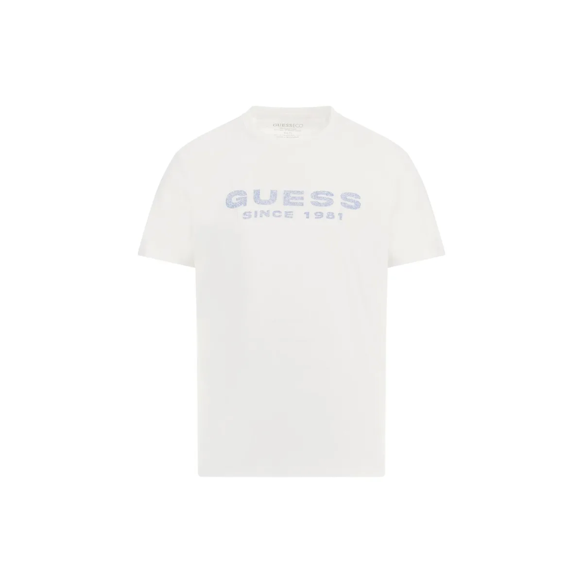 Guess T-shirt sinds 1981, wit katoen, heren. Authentiek Guess-kledingstuk - streetwear/sportswear design van Guess - Guess herenmode, perfect voor dagelijks gebruik - dit witte Guess T-shirt past perfect bij de rest van je garderobe - comfortabel katoen - klassiek - sinds 1981