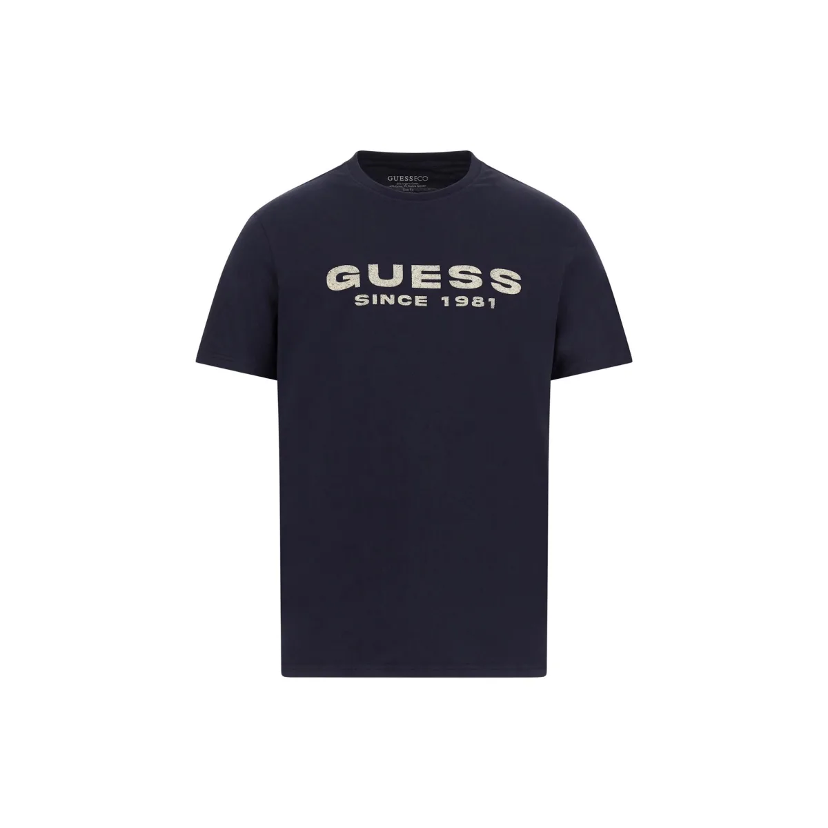 Guess T-shirt sinds 1981, heren, blauw katoen. Authentiek Guess-kledingstuk - streetwear/sportswear design van Guess - Guess herenmode, perfect voor dagelijks gebruik - dit blauwe Guess T-shirt past perfect bij de rest van je garderobe - comfortabele katoenen stof - klassiek - sinds 1981