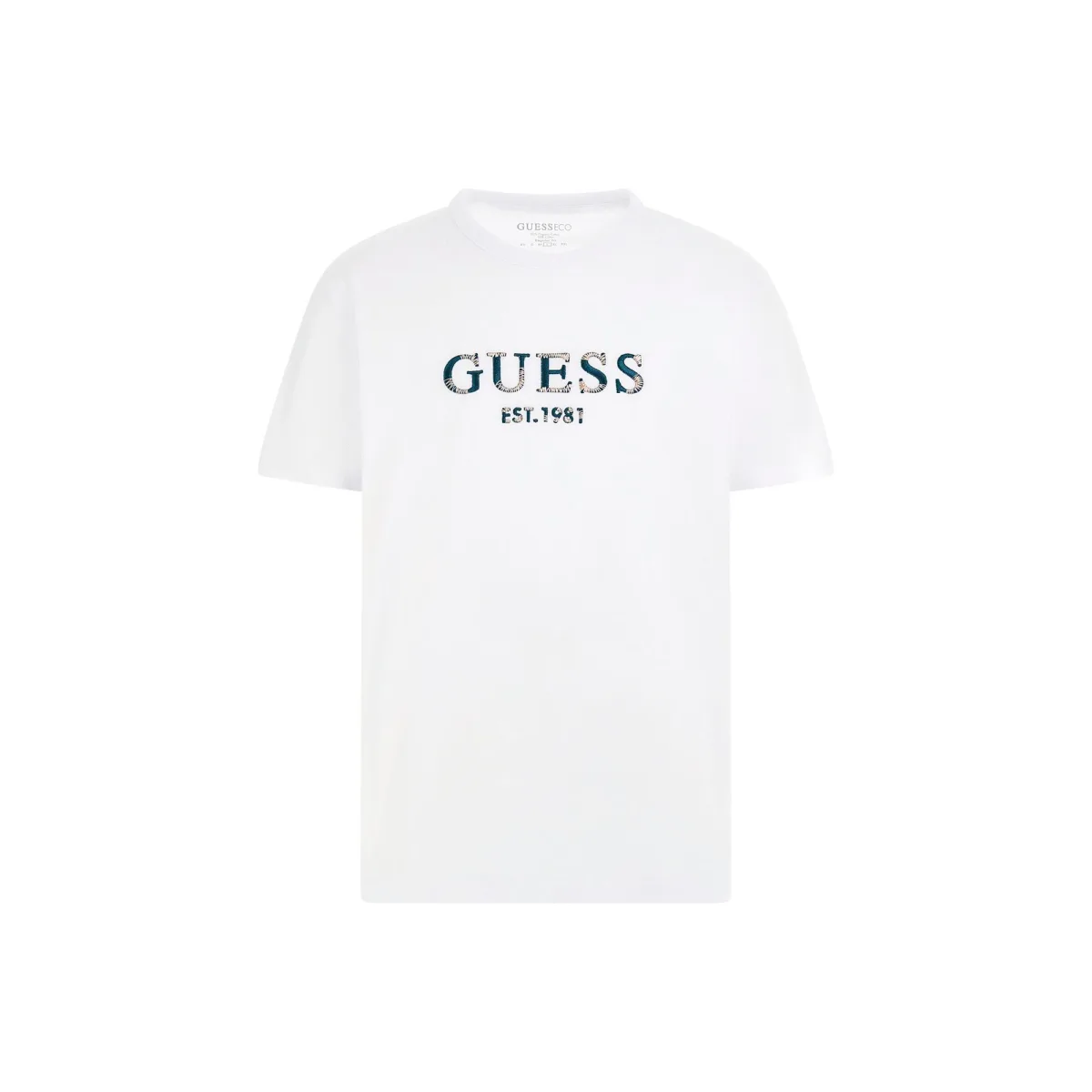 Guess EST 1981 heren T-shirt van wit katoen. Authentieke kleding van het merk Guess - streetwear/sportkleding design van Guess - Guess herenmode, perfect voor dagelijks gebruik - dit witte Guess T-shirt past perfect bij de rest van je garderobe - comfortabele katoenkwaliteit - klassiek - EST 1981 -