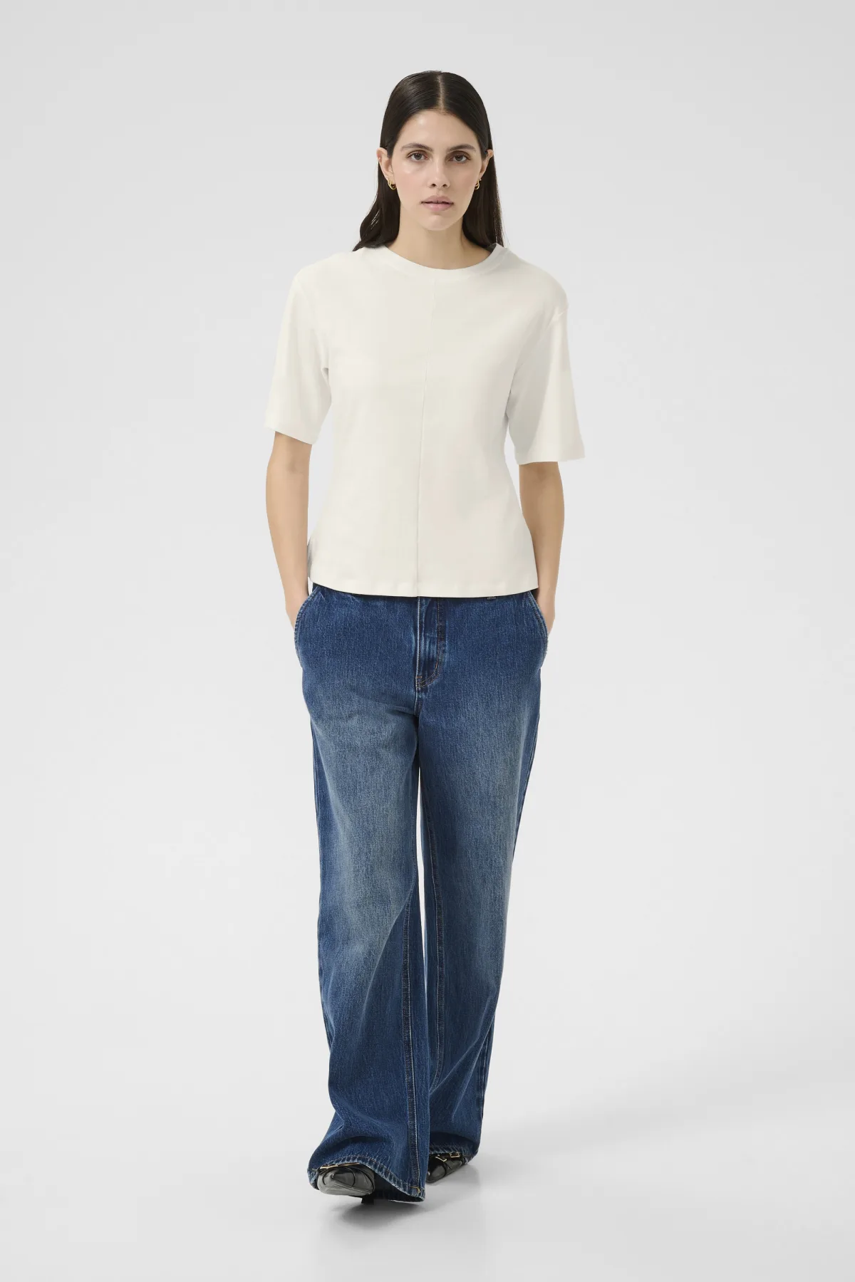 Dit dames t-shirt heeft een ontspannen pasvorm, ronde hals en korte mouwen voor optimaal comfort en veelzijdigheid. Subtiele details geven een elegante uitstraling. Wassen op 30°, niet bleken, drogen in droger bij hoge temperatuur, Druipnat ophangen in de schaduw, warm strijken max. 150° C, 100% Katoen