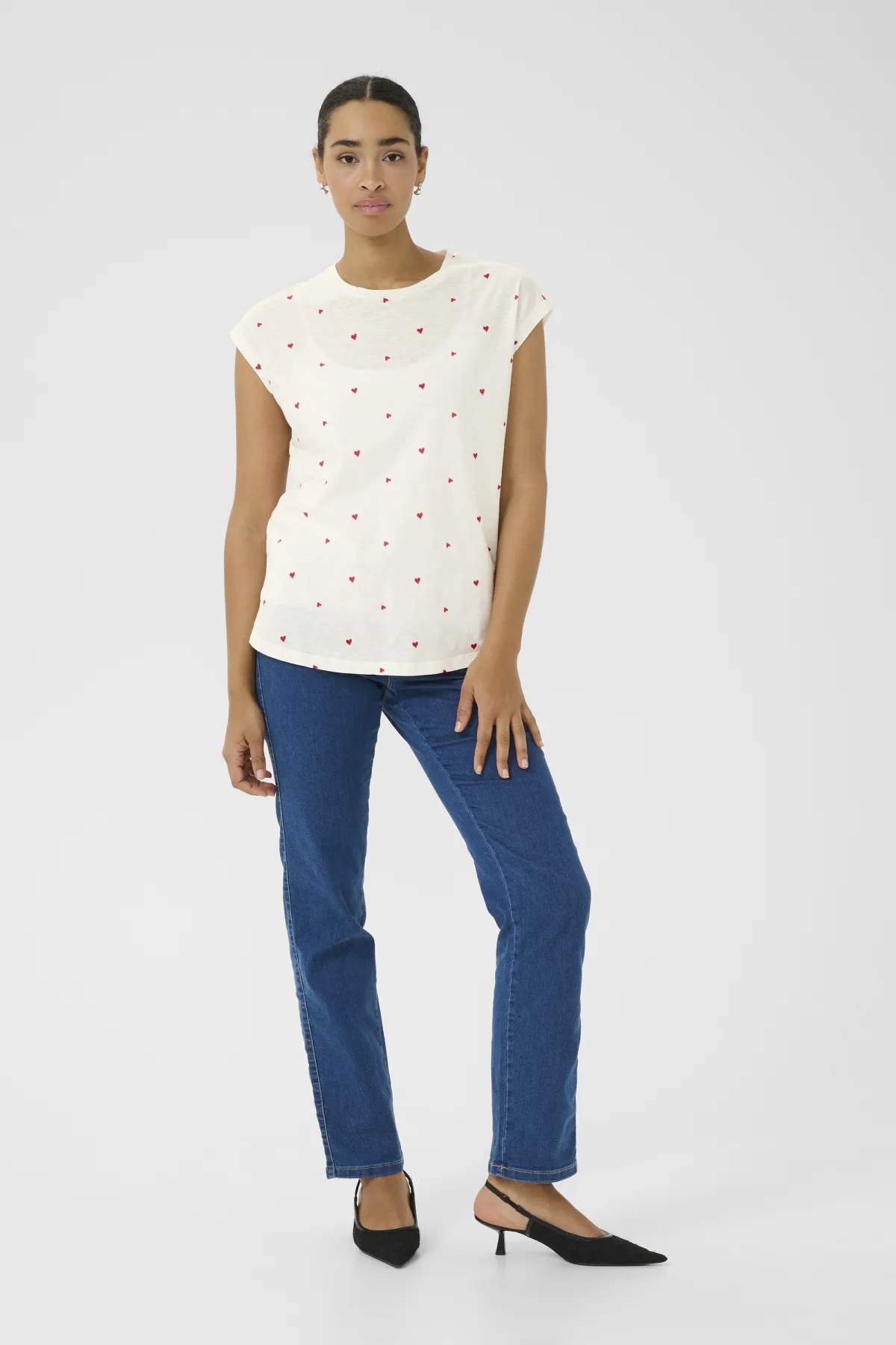 T-shirt Loose fit Chalk W. Raspberry Hearts white red
