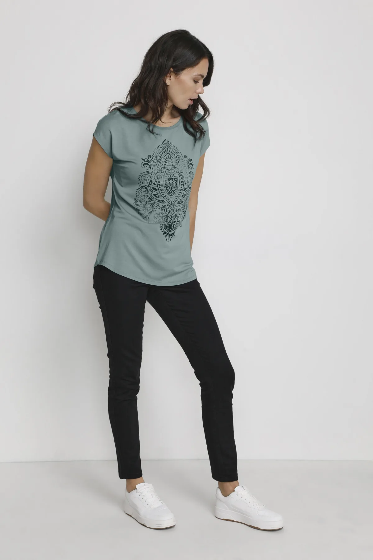 Loose fit,Korte mouwen Wassen op 30°, niet bleken, niet in de droger drogen, Druipnat ophangen in de schaduw, koud strijken max. 110° C, 95% Viscose,5% Elastaan