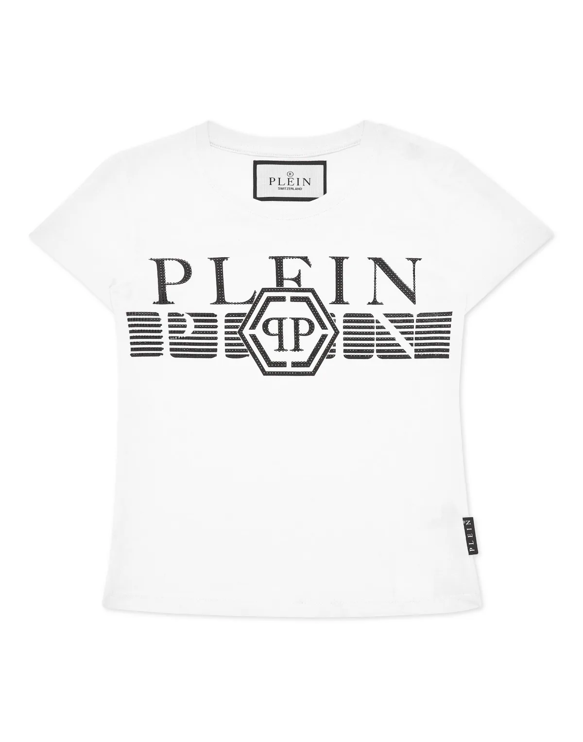 Verfraaid Dit T-shirt kanaliseert een gedurfde straat-geïnspireerde energie met zijn gestructureerde pasvorm en opvallend logo-ontwerp, waardoor het een veelzijdig stuk is voor een opvallende dagelijkse styling. gemaakt van puur premium katoen voor ademend comfort. Straight man-fit cut biedt een ontspannen, modern silhouet. Front logo artwork met zeshoek embleem voor handtekening stijl. kristal-stijl glasvezeldetails voegen een verfijnde schittering toe. Perfect om te combineren met denim, shorts of gelaagde jassen.