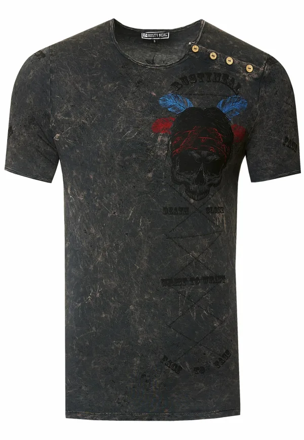 Tshirt met gewassen ronde hals knoopsluiting en prints