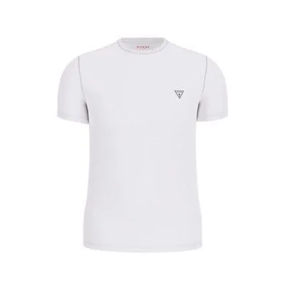 Guess Mini Triangle heren T-shirt van wit katoen. Authentiek Guess-kledingstuk - streetwear/sportswear design van Guess - Guess voor heren, modieus en perfect voor dagelijks gebruik - dit witte Guess T-shirt is gemakkelijk te combineren met de rest van je garderobe - comfortabele katoenkwaliteit - klassieke mini-driehoekstijl -