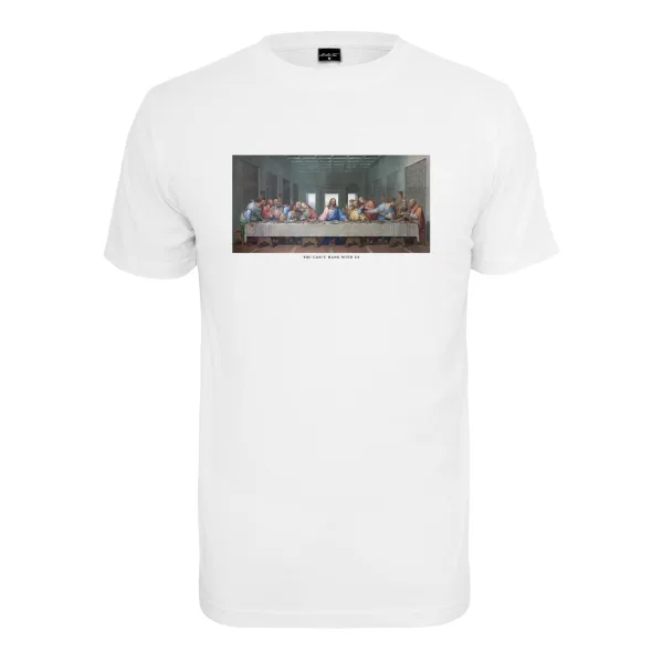 Hoe exclusief is jullie kliek? Laat de wereld met dit iconische T-shirt zien dat je niet zomaar iedereen in je kring toelaat! Op de voorzijde staat het wereldberoemde schilderij van Jezus en zijn discipelen bij het Laatste Avondmaal en het opschrift "You can't hang with us", waardoor de prent een echt statement wordt.