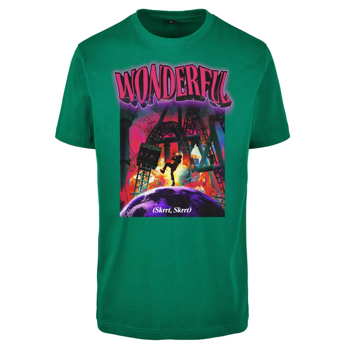Op zoek naar een casual T-shirt met een kleurrijke print? Dit stuk, met de dominante Wonderful letters en het rollercoaster motief, zou precies kunnen zijn wat je garderobe nodig heeft. Verkrijgbaar in zwart of wit, de juiste keuze voor uw favoriete outfit.