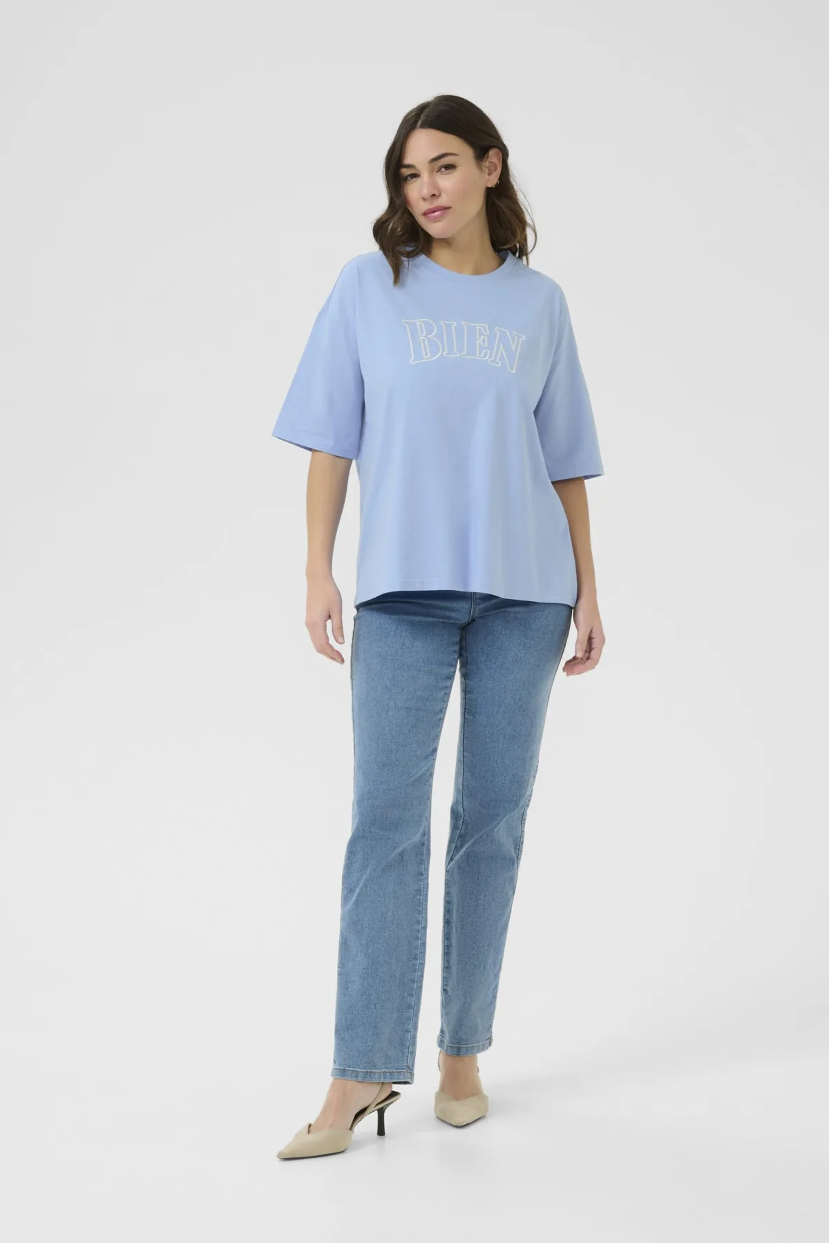 T-shirt Oversize fit Vista Blue W. Chalk Embroidery