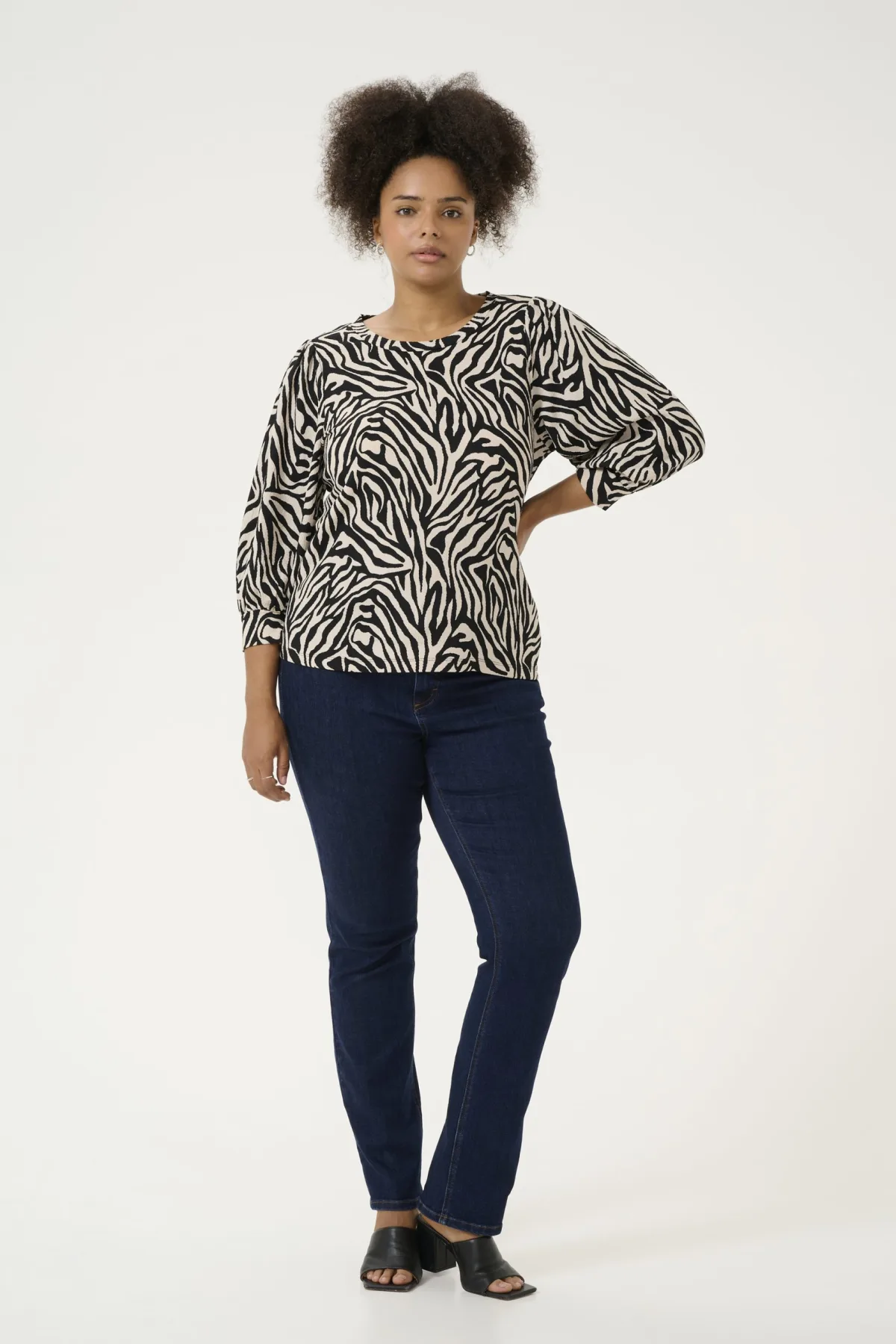 Regular fit,3/4 mouwen Fijne was 30°, niet bleken, niet in de droger drogen, Druipnat ophangen in de schaduw, koud strijken max. 110° C, Niet droog reinigen 95% Polyester (Gerecycled),5% Elastaan