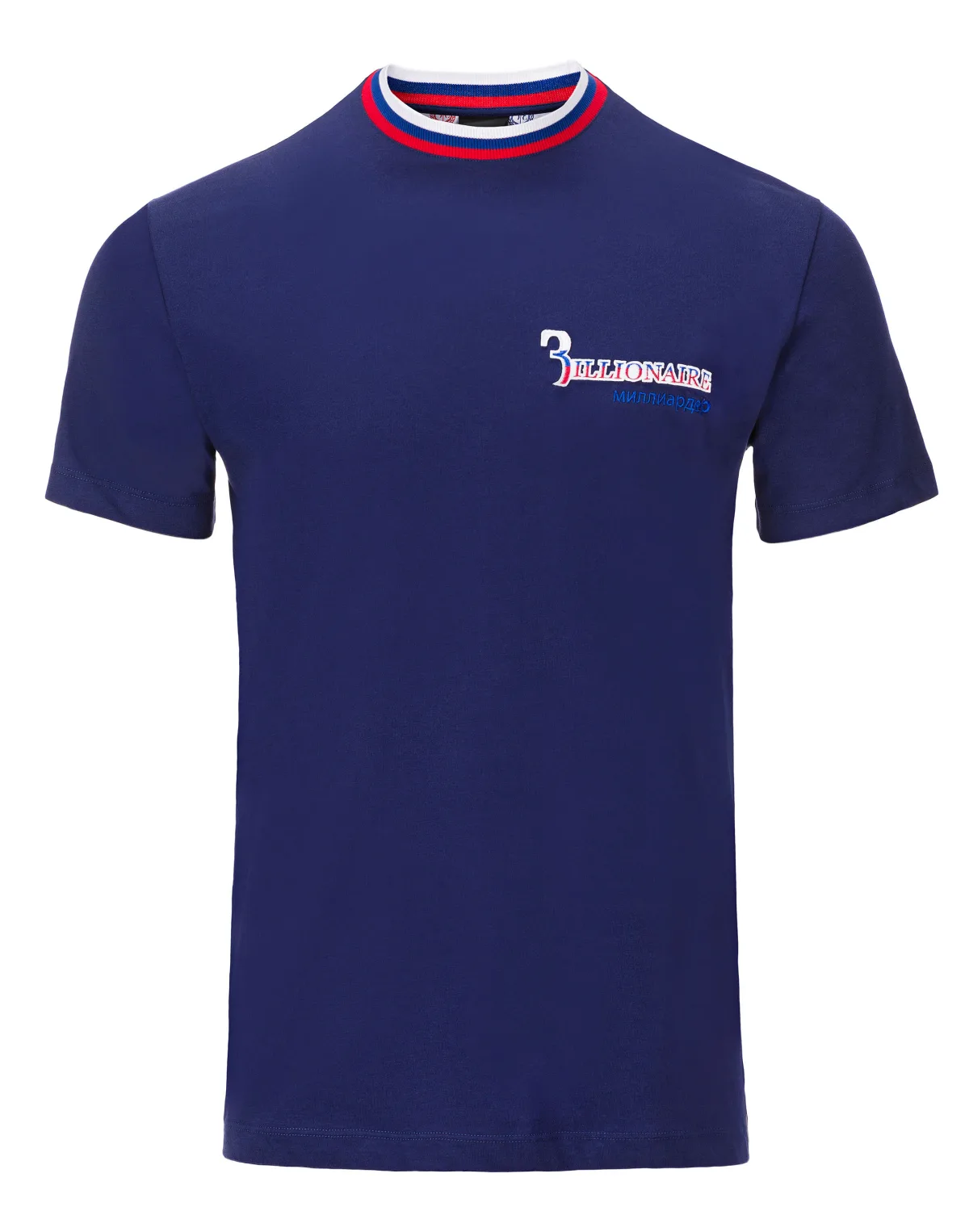 Billionaire viert de FIFA World Cup, het belangrijkste evenement voor voetbalfans, met deze speciale capsulecollectie waarin de iconische symbolen van het Huis en de officiële graphics van Rusland 2018 samenkomen en een unieke herdenkingscollectie creëren. Zoals dit katoenen T-shirt van jersey met bedrijfsopschriften en decoraties in de kleuren van de Russische vlag, ook rond de halslijn.
