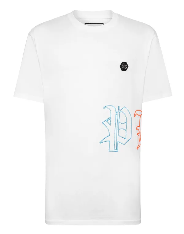Ontdek de originaliteit van dit katoenen jersey T-shirt met korte mouwen versierd met bijzondere patronen. Katoenen jersey Het iconische Gothic Style Merk is geborduurd op de linkerzijde PP Hexagon op een saffiaan lederen patch genaaid op de linkerborst Ribgebreide hals Stiksels met twee naalden