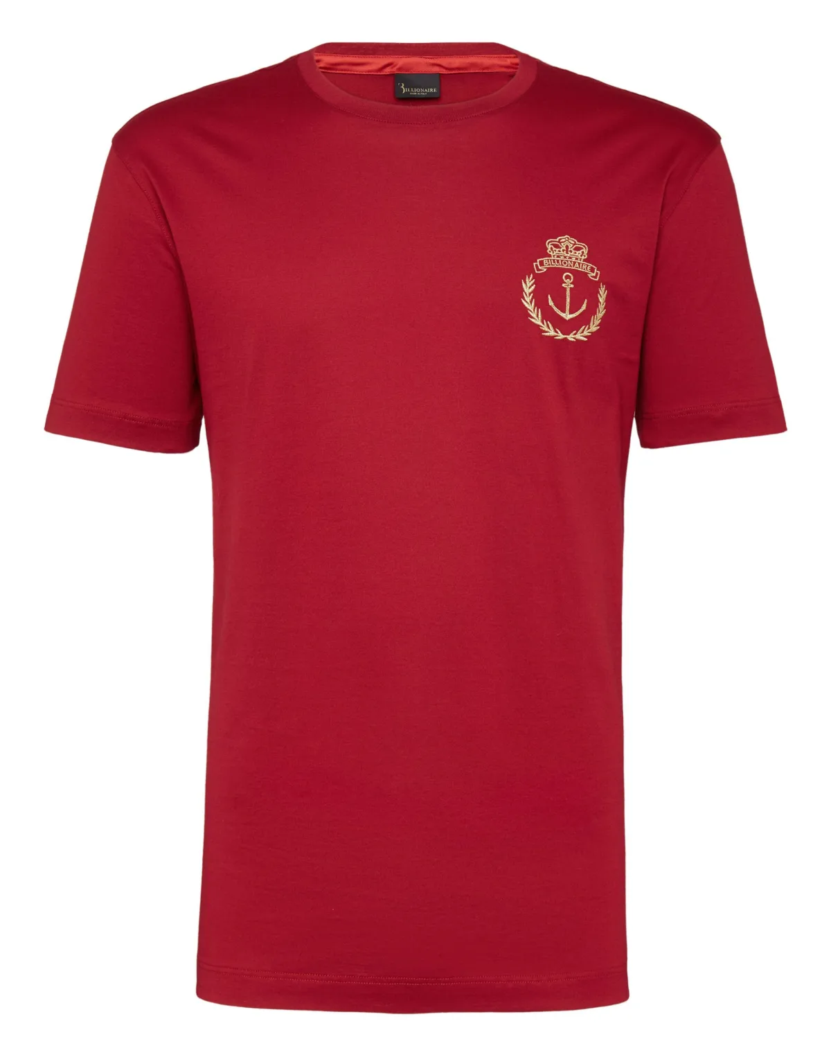 A maritime-inspired emblem is embroidered at left chest on this cotton jersey T-shirt. A smaller emblem is embroidered on the hanging loop at yoke. Two slits on the back. Ribbed neckline. Two-needle stitching on both cuffs and bottom hem.