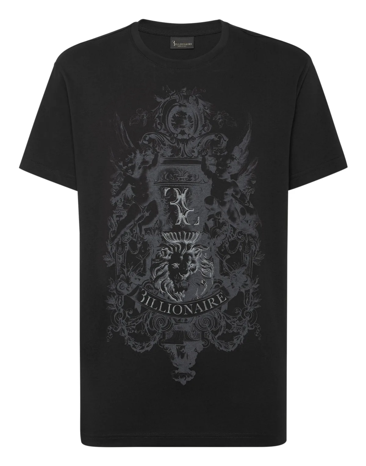 Billionaire adds a whiff of style to your leisure time. Like with this jersey T-shirt. Cotton jersey Rubberized pattern print on the front Rib knit neckline Two needle stitching