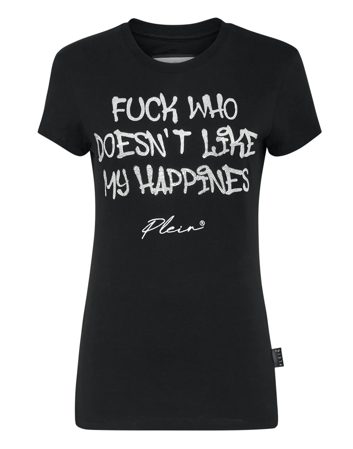 Verfraaid Een inscriptie is genoeg om van een T-shirt een must-have te maken. Wij raden dit T-shirt uit de Sexy Pure lijn aan. Het is gemaakt van katoenen jersey en heeft een opvallende print met strassteentjes en een saffiaanleren patch met de PP Hexagon op het passtuk genaaid. Zomen gestikt met twee naalden.