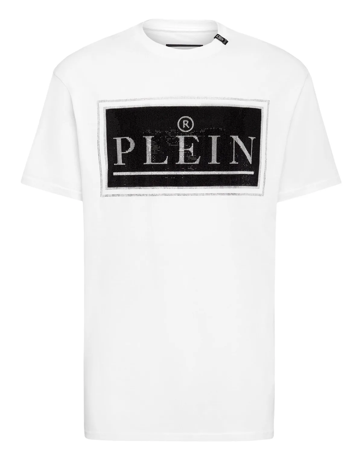 Katoenen T-shirt van jersey. De merkbelettering met strassteentjes siert het kledingstuk. De PP Hexagon patch is op het juk genaaid. Zomen gestikt met twee naalden.