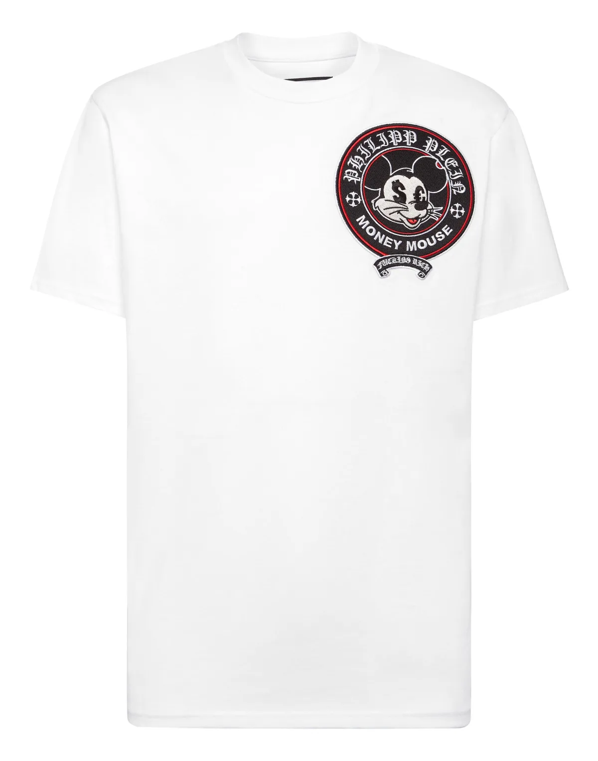 A plain T-shirt can become a must-have garment. Look at the details. Cotton jersey Embroidered patch sewn at left chest Logoed patch sewn on the yoke Rib knit neckline Two needle stitching