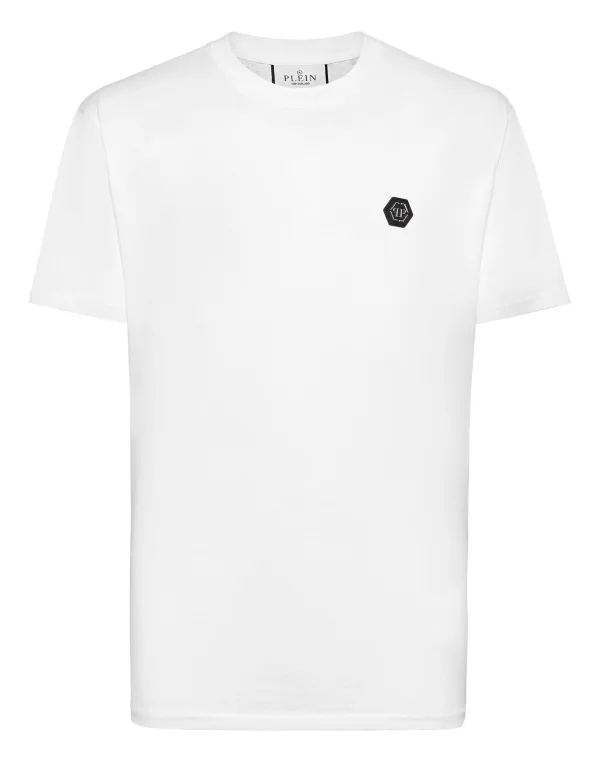 Uniekheid en innovatie zitten in het DNA van Plein en zijn terug te vinden op dit katoenen T-shirt. Bekijk de details. Katoenen jersey Bejewelled regenprint op de rug PP Hexagon op een saffiaanleren patch is genaaid op de linkerborst Ribgebreide hals Twee naaldstiksels Pasvorm: Over